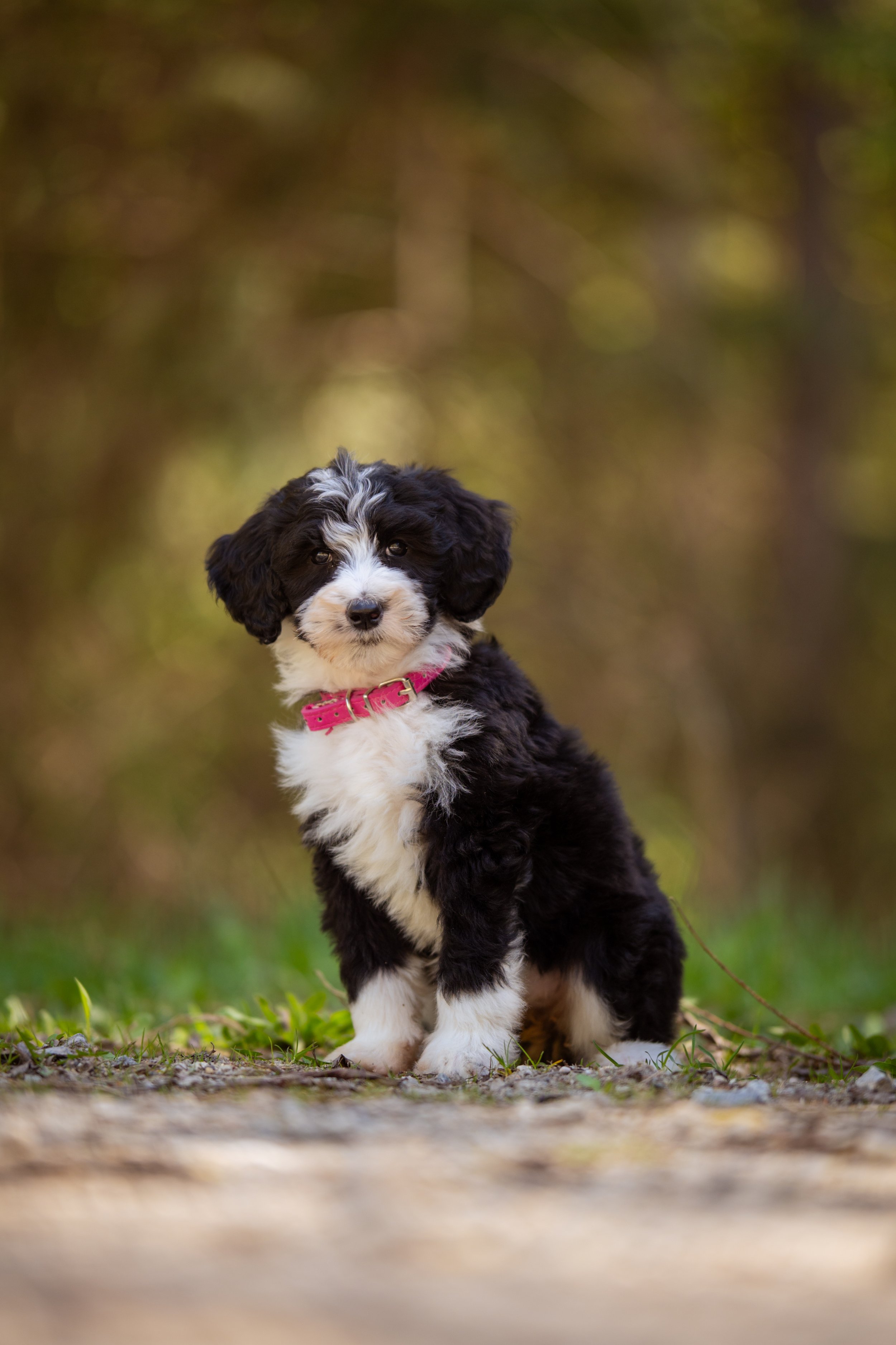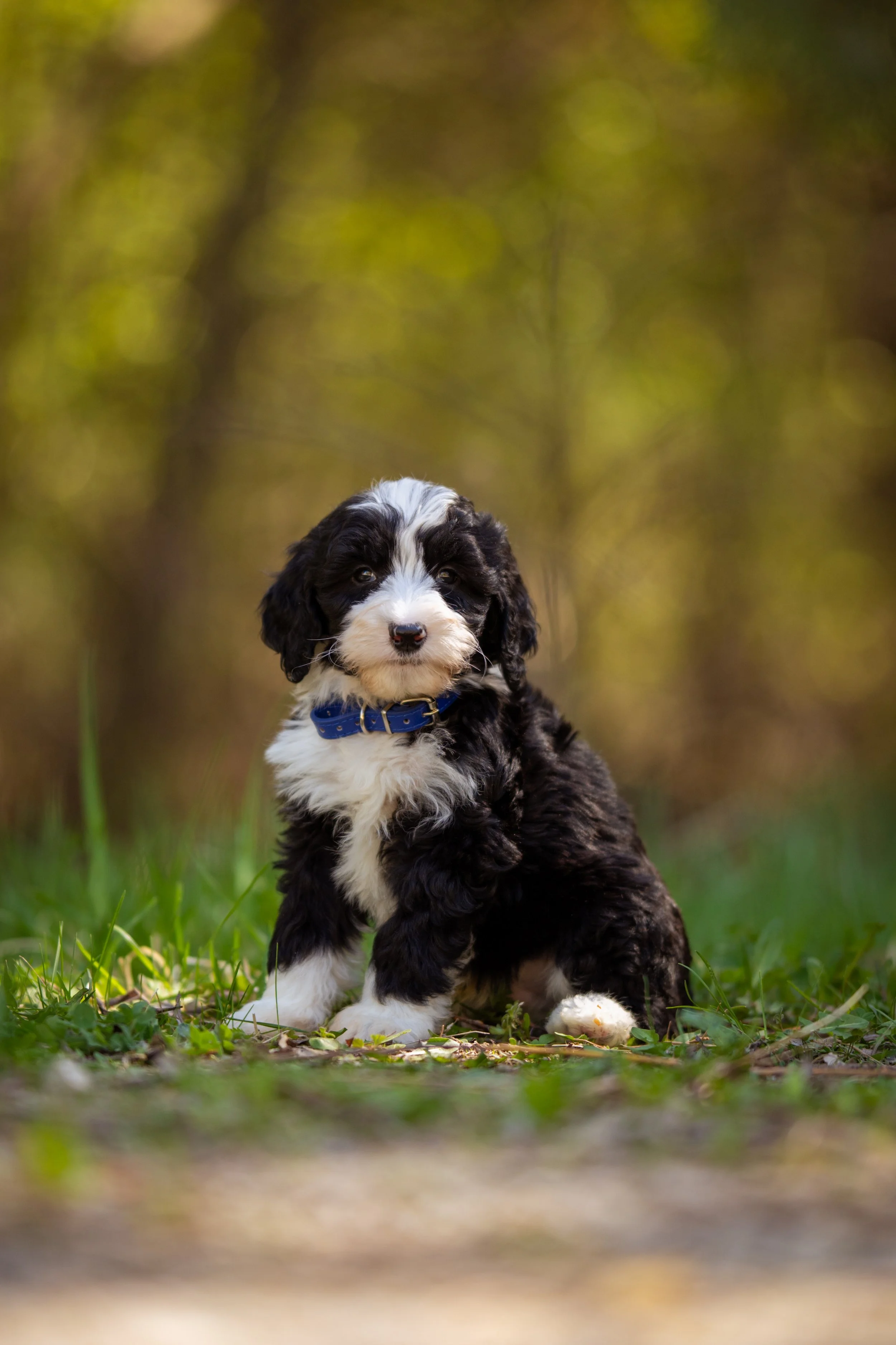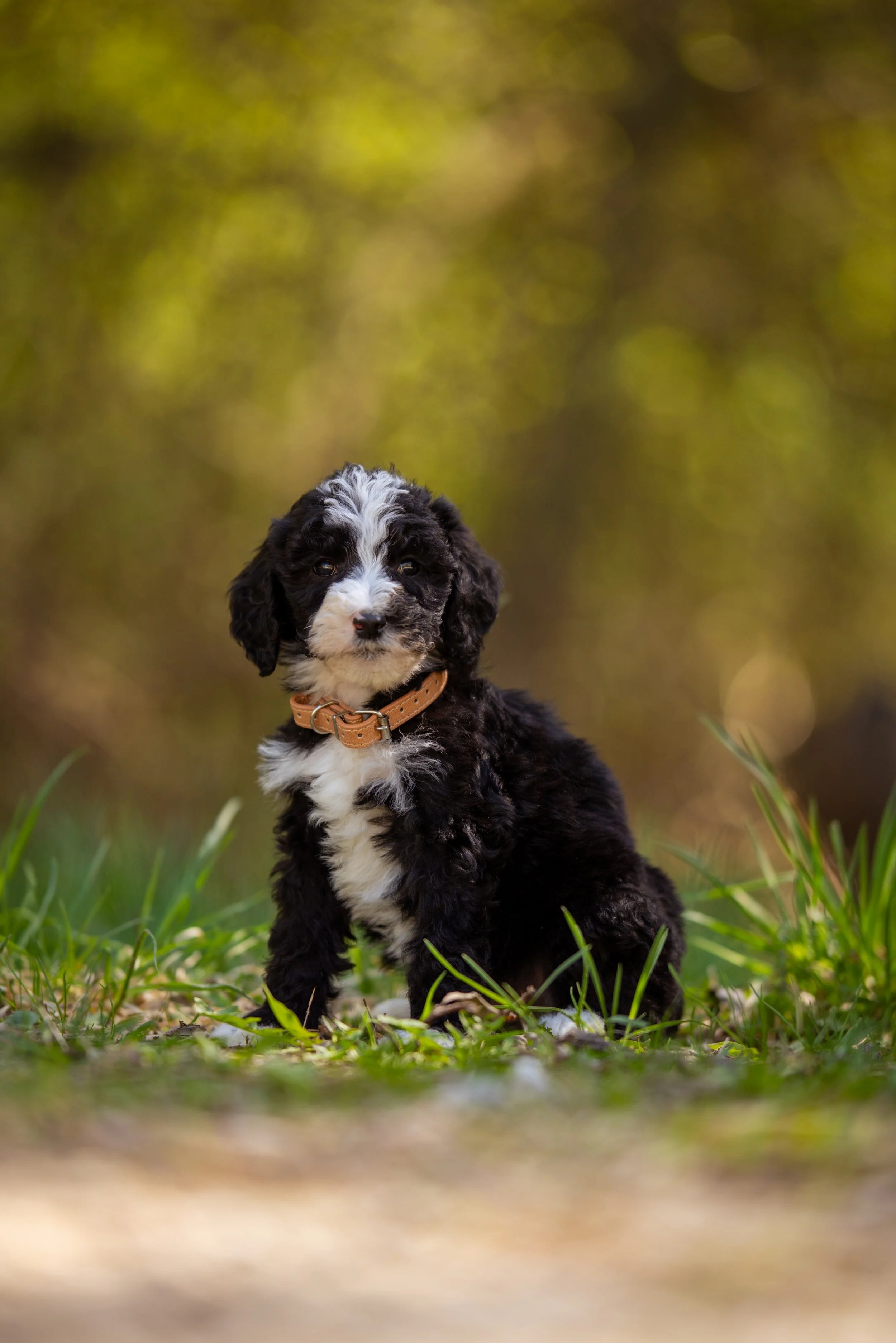 F1 Bernedoodle puppies (also known as Bernese Mountain Poo) shed very little and are considered hypoallergenic.